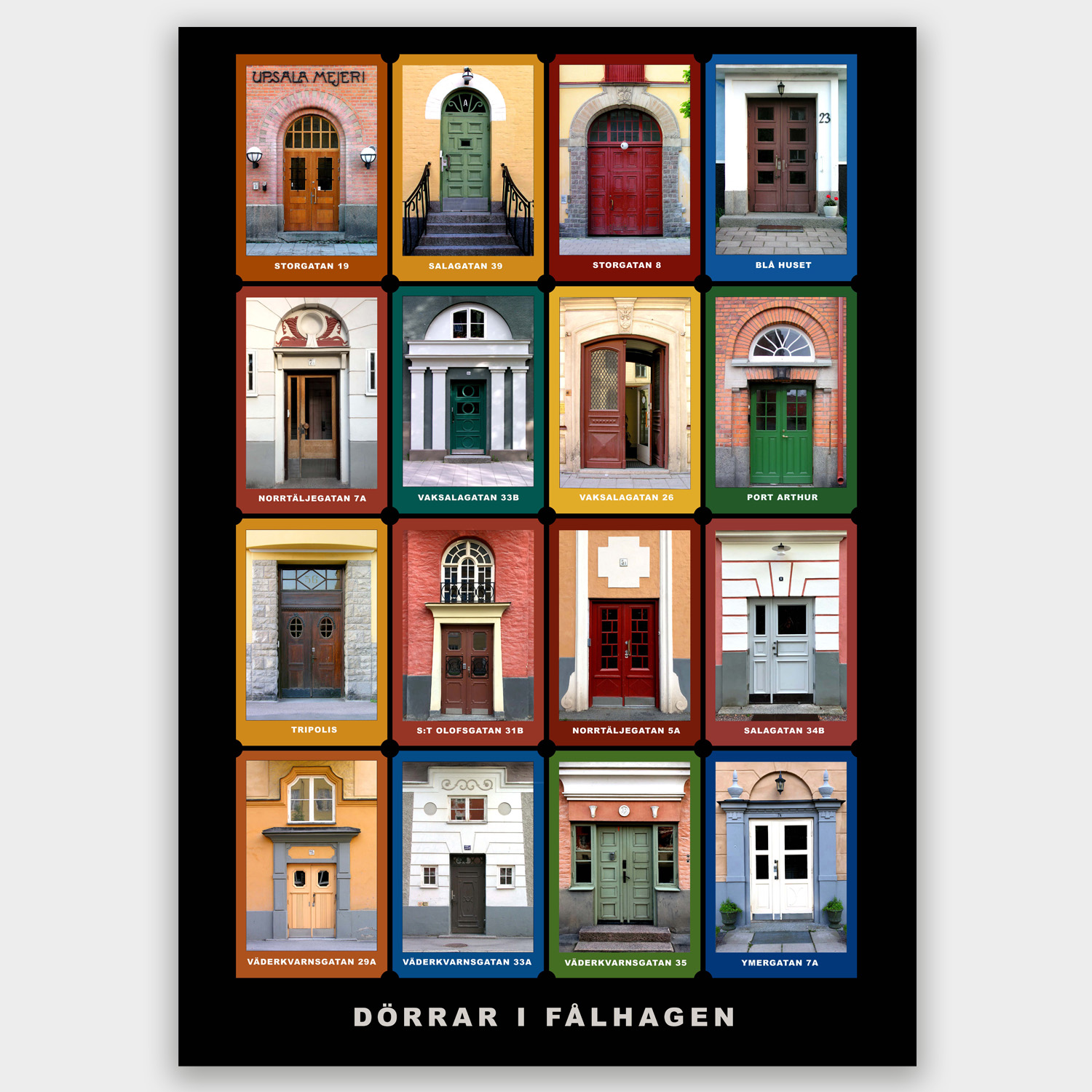 Ett vykort i A5-format med vackra dörrar i Fålhagen, Uppsala. En perfekt souvenir från Uppsala att ha på kylskåpet. Följande dörrar är med: Storgatan 19, Salagatan 39, Storgatan 8, Blå Huset (S:t Göransgatan 25), Norrtäljegatan 7A, Vaksalagatan 33B, Vaksalagatan 26, Port Arthur (Ymergatan 6), Tripolis, S:t Olofsgatan 31B, Norrtäljegatan 5A, Salagatan 34 B, Väderkvarnsgatan 29A,…